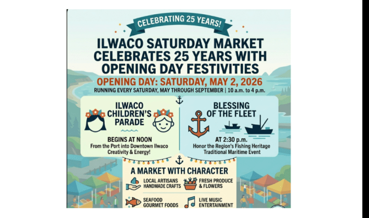 The beloved Ilwaco Saturday Market is kicking off its 25th anniversary season (2001–2026) with a full day of celebration, community spirit, and coastal charm at the Port of Ilwaco. Running every Saturday from May through September, 10 a.m. to 4 … Continue reading Ilwaco Saturday Market Celebrates 25 Years with Opening Day Festivities