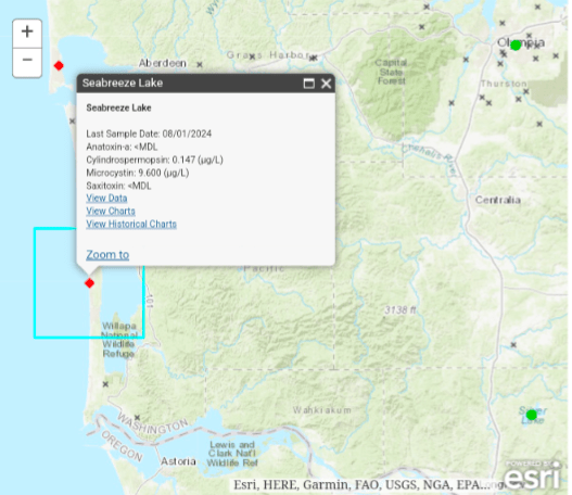 Testing in recent years show consistent issues with toxic algae blooms in sea breeze lake. Given pacific county has several waterways but sea breeze lake appears to be a consistent problem.