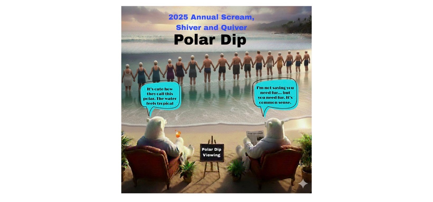 The Polar Dip is officially on track, and the early weather outlook looks good. There are no storms or wave events predicted—maybe a bit of rain, but let’s be honest… we’re already planning to get wet!